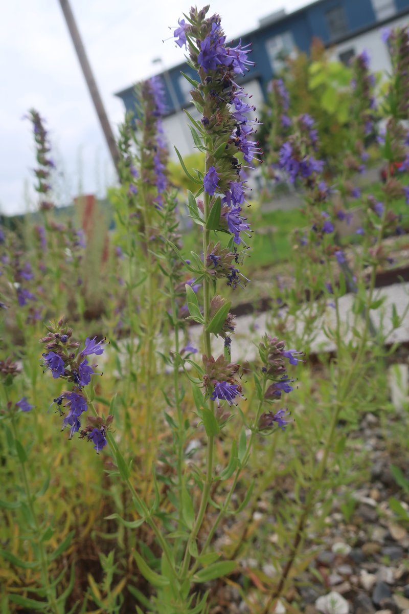 Im Land der Bibel wird auch Origanum syriacum mit Ysop bezeichnet. In Europa wird mit Ysop diese Art (Hyssopus officinalis) bezeichnet, die bei uns im Wallis vorkommt. Aber dieser Ysop kommt im Land der Bibel nicht wild vor. Es ist nicht klar, welche der beiden Arten in der Bibel gemeint ist. Auch Origanum ist im Bibelgarten zu finden, allerdings nicht Origanum syriacum sondern der ähnliche einheimische Origanum vulgare. Beide Arten gehören zu den Lippenblütlern, zu denen viele Gewürzpflanzen wie Thymian, Salbei, Rosmarin usw. gehören. Die Blätter der Vertreter dieser Familie riechen alle charakteristisch, aber einige Arten für uns nicht angenehm. Die Blüten dieser Familie sind sehr genau auf Insektenbestäubung eingerichtet: Das Insekt (oft Hummeln) muss weit in den Schlund der Blüte kriechen, um an den Nektar an deren Grund zu kommen. Dabei betätigt es einen Hebel, der Blütenstaub auf seinen Rücken tupft. In der nächsten Blüte ist der Hebel so angelegt, dass der Stempel genau auf den gleichen Ort am Rücken tupft und den Blütenstaub aufnimmt. Dost und Ysop sind mehrjährig. Die Stängel verholzen, weshalb man sie auch als kleine Sträucher ansehen kann.