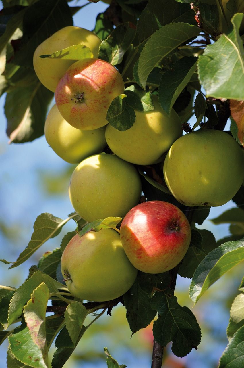 Der Apfelbaum stammt wahrscheinlich aus dem Kaukasus. Dort wurden schon vor 6000 Jahren apfelähnliche Früchte gehandelt. Der Name der Kasachischen Hauptstadt (Alma ata) heisst übersetzt «Grossvater der Äpfel». Vor 3800 Jahren hat man herausgefunden, dass die Eigenschaften von aus Samen gezogenen Bäumen anders sind als die der Elternpflanzen. Deshalb hat man das Pfropfen der Sorten angefangen: Zweige einer Pflanze, die gut schmeckende Früchte produziert, werden auf einen andern Apfelbaum (Unterlage) gepfropft. Der Apfelbaum gehört zur Familie der Rosengewächse. Früchte entwickeln sich nur, wenn die Blüten befruchtet werden. Eine gute Ernte entsteht bereits, wenn 5% der Blüten befruchtet werden. Die Pflanze ist «selbststeril»: Die Befruchtung funktioniert nicht, wenn sie durch Blüten desselben Baumes geschehen. Oft muss die Bestäubung sogar durch eine andere Sorte geschehen. Deshalb stehen im Bibelgarten auch 2 Bäume. Die Pollen können nur durch Insekten (oft Bienen) von einem Baum zum andern transportiert werden. Die ursprüngliche Wuchshöhe der Apfelbäume betrug 8-15m. Doch wurden in neuerer Zeit kleiner bleibende Sorten gezüchtet (Spalierbäume und Spindeln). Wegen der beengten Platzverhältnisse stehen im Bibelgarten 2 Spindeln.