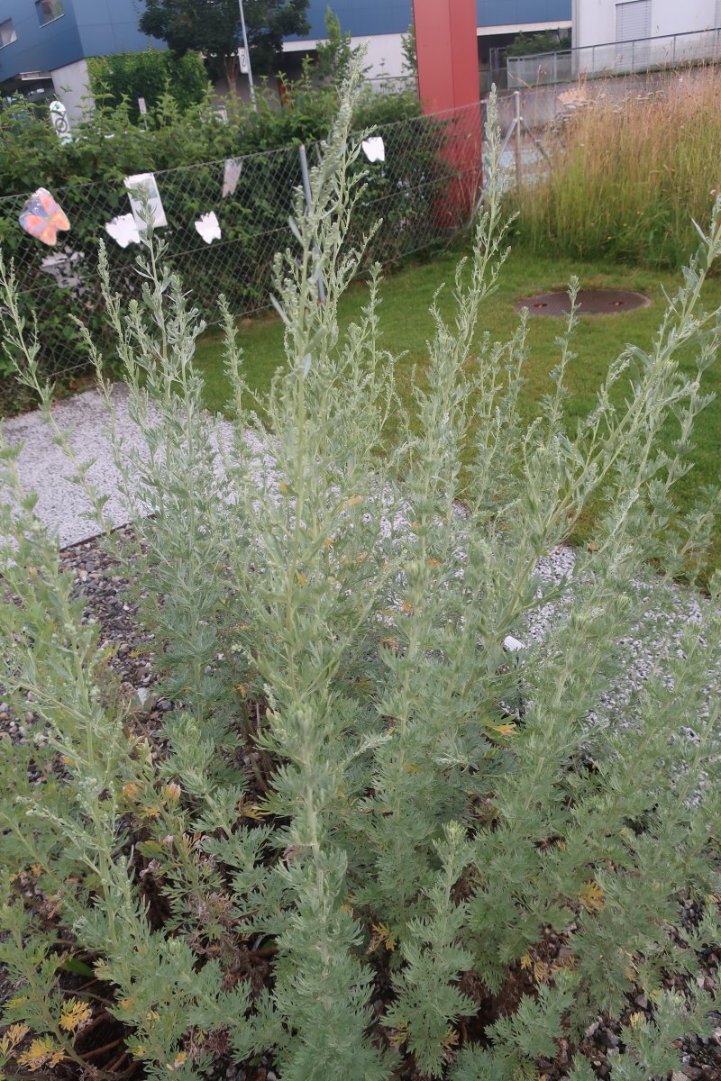 Es gibt verschiedene Arten von Wermut. Die Art, die im biblischen Land wächst (Artemisia alba), ist bei uns nicht winterhart. Entsprechend haben wir den einheimischen Wermut als Ersatz genommen. Wermut ist eine Pflanze aus der grossen Familie der Körbchenblütler. Sie kommt in weiten Teilen Europas und Asiens wild vor. Sie bevorzugt warme und trockene Standorte. Entsprechend ist sie im Wallis sehr häufig anzutreffen. Die Blätter sind graufilzig und haben einen starken Geruch. Die Blätter schmecken stark bitter. Entsprechend wird Wermut als Appetitanreger verwendet. Bekannt in der Schweiz ist auch der Absinth, der aus Wermut gebrannt wird. Wermut enthält auch ein Gift (Thujon), weshalb der Absinth lange Zeit in der Schweiz verboten war. Die Blüten sind unscheinbar grünlich-gelb. Sie werden durch Wind bestäubt. Der Wermut wurde schon in der Antike als Heilmittel verwendet.