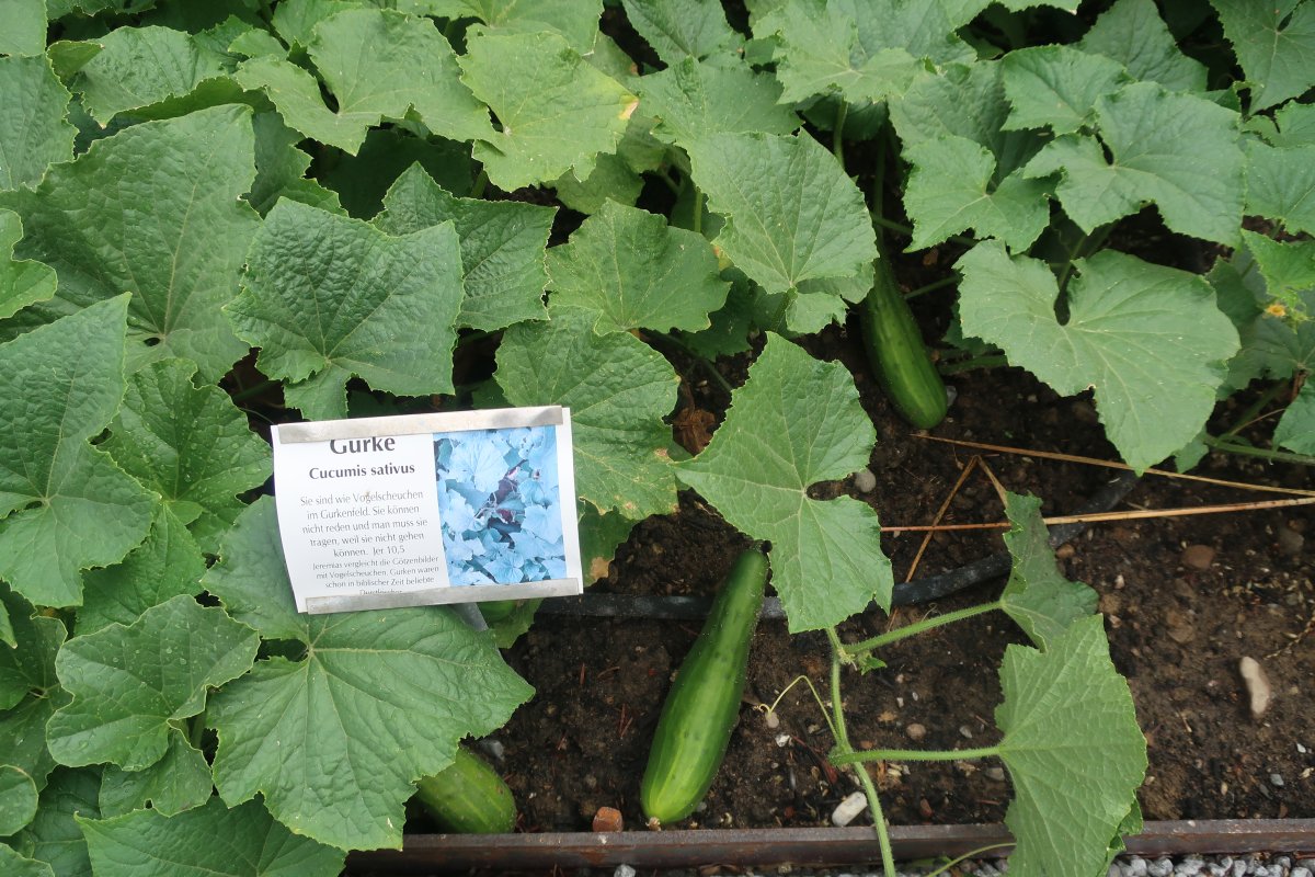 Die Gurke ist eng mit der Melone verwandt und gehört auch zur Familie der Kürbisgewächse. Sie stammt aus Indien. Auf derselben Pflanze gibt es männliche und weibliche Blüten. In neuerer Zeit wurden Sorten gezüchtet, die nur weibliche Blüten haben und auch ohne Befruchtung Früchte ansetzen. Um 600 v. Chr. ist ihr Anbau im nahen Osten verbürgt, aber sie dürfte dort schon früher bekannt gewesen sein. Die Gurke ist etwas kältetoleranter als die Melone, gedeiht aber bei uns in regnerischen, kühlen Sommern schlecht.
