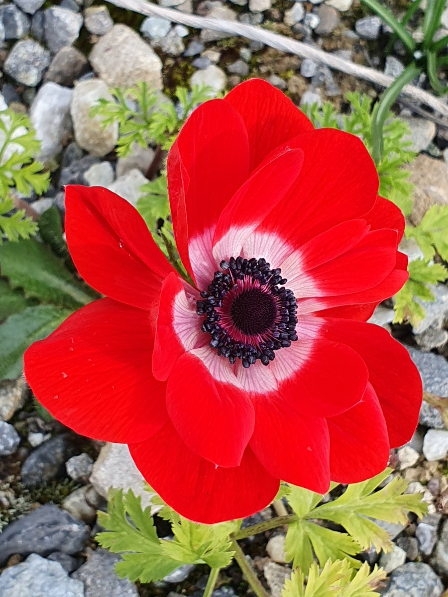 Die Anemonen, auch Windröschen genannt, gehören zur grossen Familie der Hahnenfussgewächse. Es gibt eine ganze Reihe von Arten von Anemonen. Die hier gezeigte Art, die Kronen-Anemone, wächst wild sehr häufig im heiligen Land. Die Wildart ist leuchtend rot. Durch Züchtung entstanden auch weisse, blaue und zweifarbige Sorten. Bei uns heimisch ist eine andere Anemonenart, das Buschwindröschen. Die Kronen-Anemone blüht in ihrer Heimat, dem Mittelmeerraum im Winter. Dort ist der Winter die Zeit, in der es regelmässig regnet. Meist sind die Temperaturen über 0°C. Bei uns erscheinen die Blüten erst im Frühjahr, ausser in sehr milden Wintern, wo schon im Winter Blüten zu sehen sind. Die stark geteilten Blätter kommen auch bei uns schon im Herbst hervor. Im Sommer zieht die Pflanze ein und überlebt die Trockenheit in kleinen Knollen.